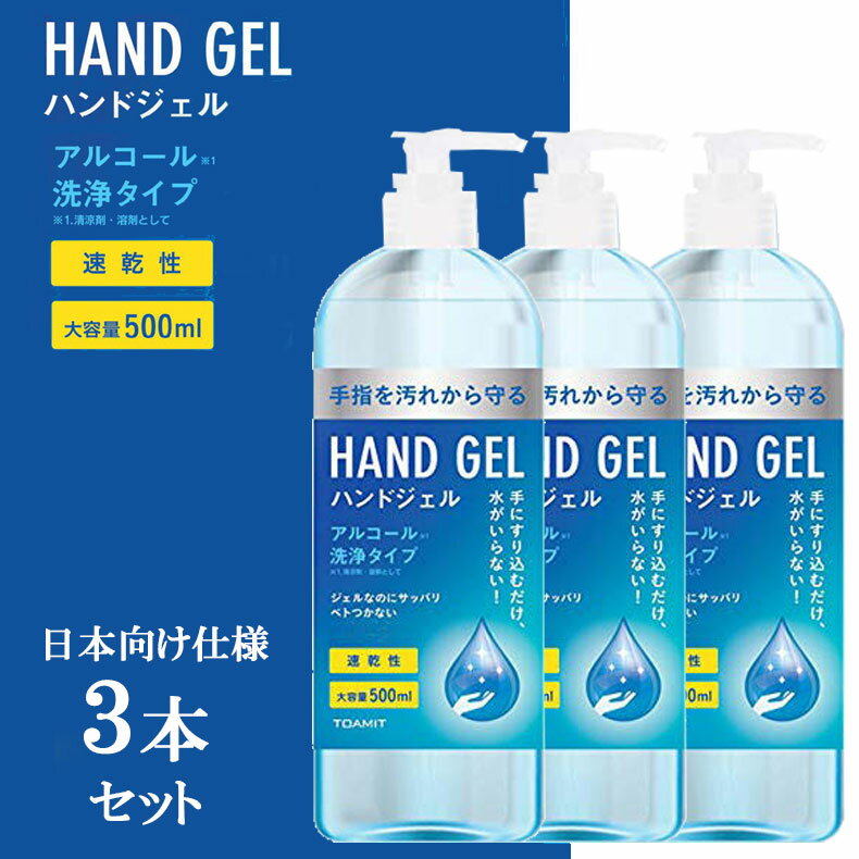 【在庫有!】<送料無料> 3本セット ハンドジェル 500ml アルコールジェル 手 指 清潔 除菌 保湿 ジェル アルコール 大容量 アルコールハンドジェル アルコール洗浄ジェル 洗浄 TOAMIT 3本 ジェル 東亜産業